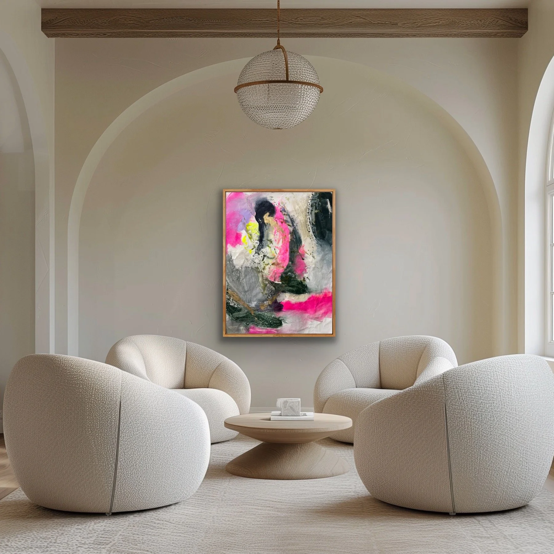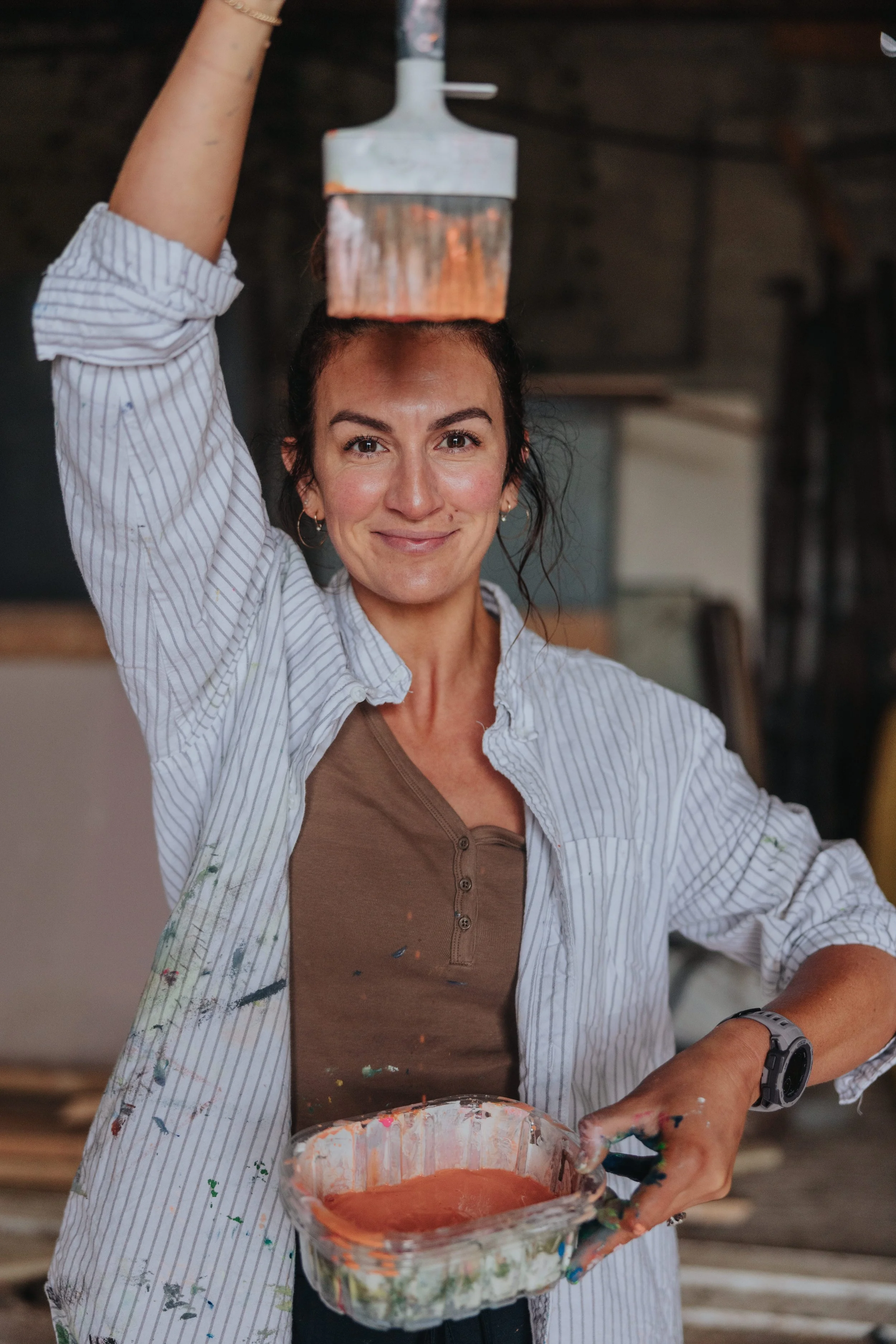 Working from her Belfast studio Aly rewrites the language of loss using bright palettes, written word and expressive brushstrokes in her performative paintings. She also teaches students globally how to paint loose.