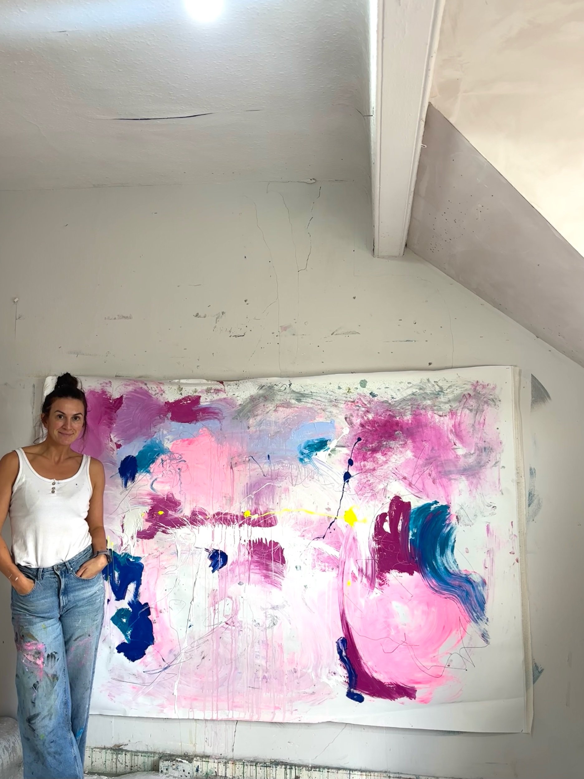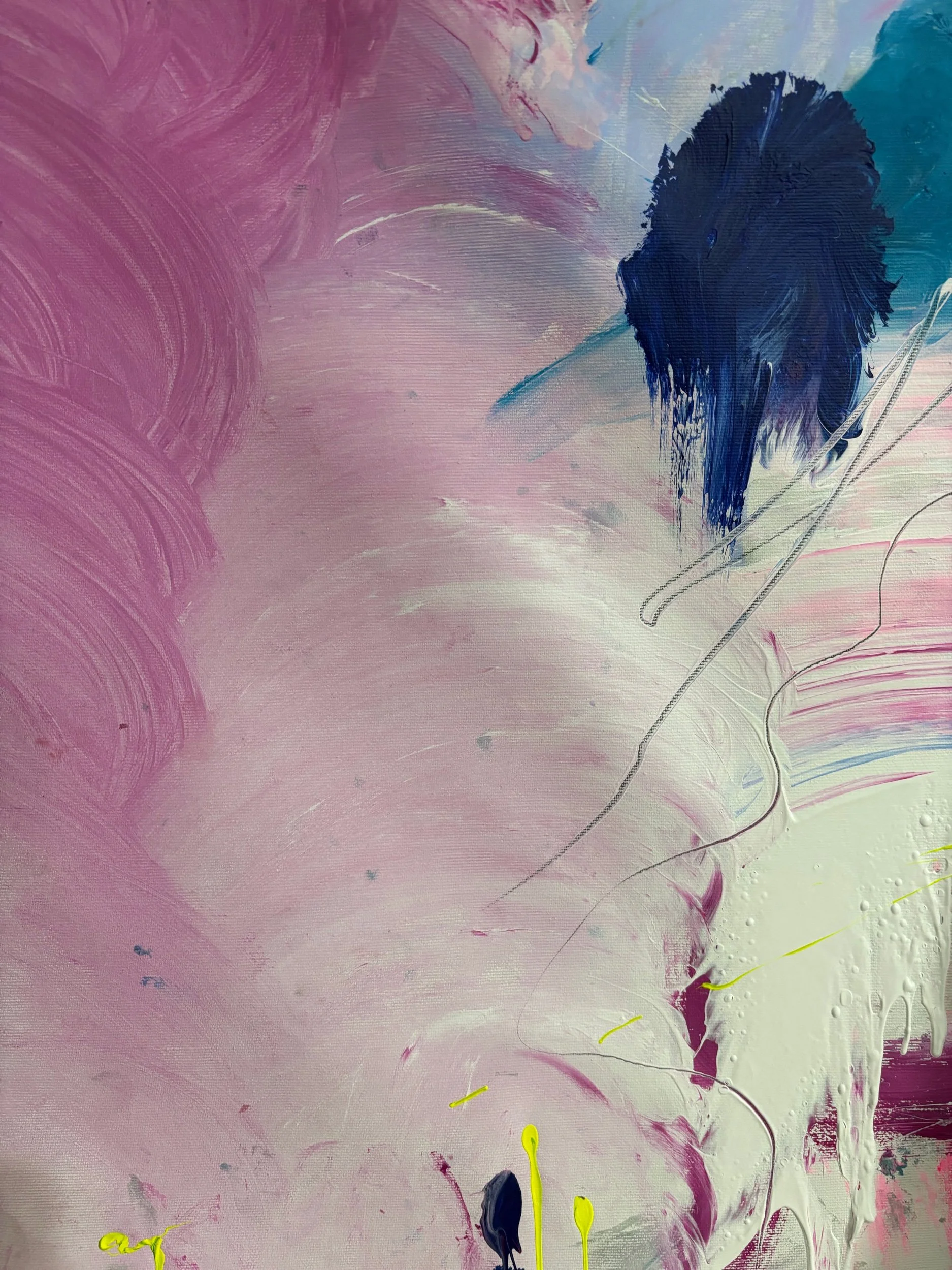 As sweet as icing sugar this painting has all the flavour of a Sunday dessert. Aly’s work is deeply rooted in grief from having lost her father at the age of 7 to the same heart defect my that she journeys.
